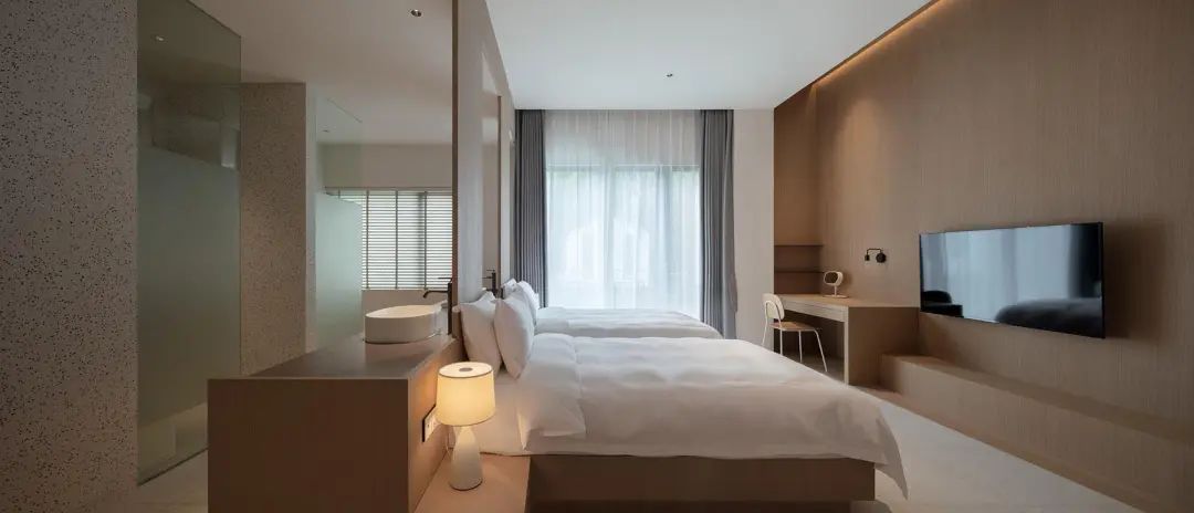 室内设计追求简约而不失精致,通过引景入室的手法,让室内空间与自然景观和谐相融。即使在室内,住客也能感受到自然的美,体会到别样的江南风情。
