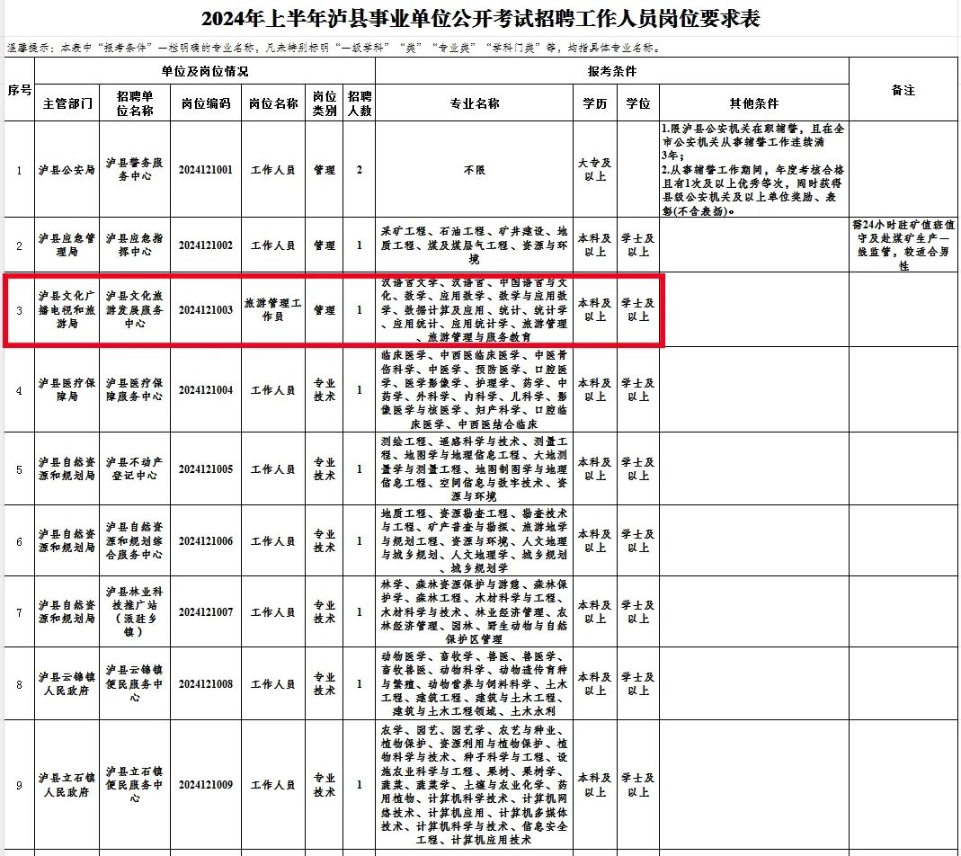 泸县文化广电旅游局招人啦,3月13日起报名!