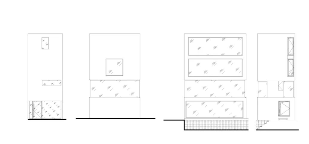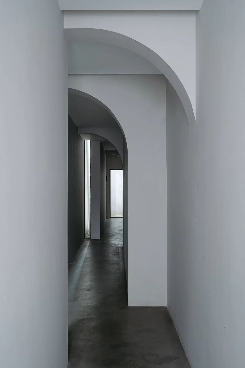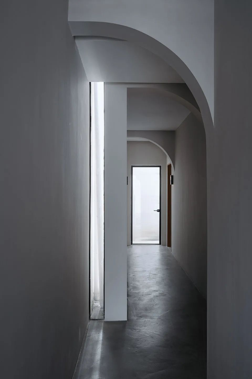 Y轴的空间序列:南北向设定为Y轴,即从玄关至阳台的流线方向,这是建筑的短切面,也是场景转换的集中体现。建筑在Y轴中实现了从外部空间到室内空间的场域转换,并在室内空间塑造了丰富的空间转换:从悬桥、片墙、短桥、门洞、玄关、卧房、阳台,视野不断切换,视线与动线交替构成了微妙转换的动态场域。