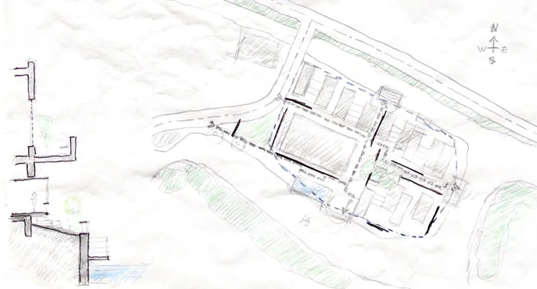 ▼一南一北,两间小屋围合出开放式庭园,它们将被改造为民宿和图书馆