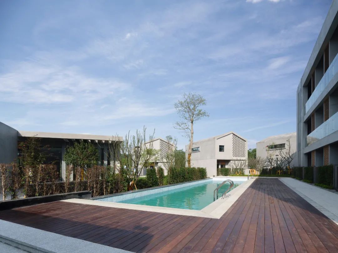 ▼从泳池望向另一栋客房建筑