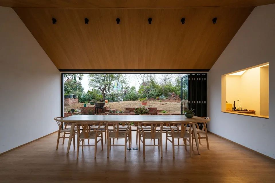 ▼从餐厅望向水池
