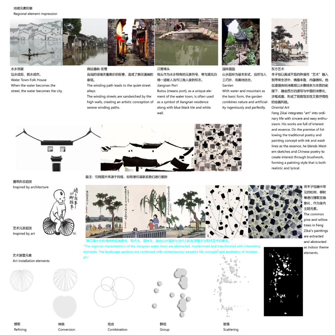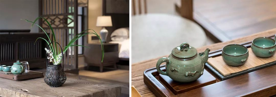 这个遗世独立的小村庄,山泉清冽,竹风松涛,自带仙侠气。万境设计以典雅不侈的隐士文化氛围为底色,以“侠气”为元素符号,藉由诗化的现代语言去表达。起于侠,归于隐,打造一种侠隐回归、自然、现代、舒适的生活状态。融入当地历史文化,无论是“汤显祖文化”,还是“龙泉青瓷”、“龙泉宝剑”等都给予设计师灵感,用一种现代方式将它复兴。
