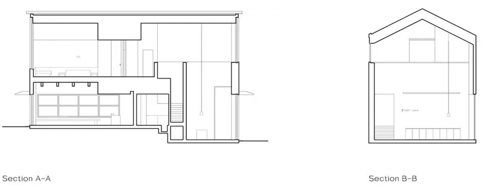 另外两个小屋与石阵纠缠在一起,设计师将平坦的卧石用作建筑的基础,拔地而起的峭壁撕裂了每个功能空间彼此直接的联系,致使小屋的轮廓如同树枝般遗落在自然之中。建筑的每个分支都根据功能的需求定义了空间尺度,卧室与客厅面向野生的自然景观,卫生间则会避开视线上的骚扰。
