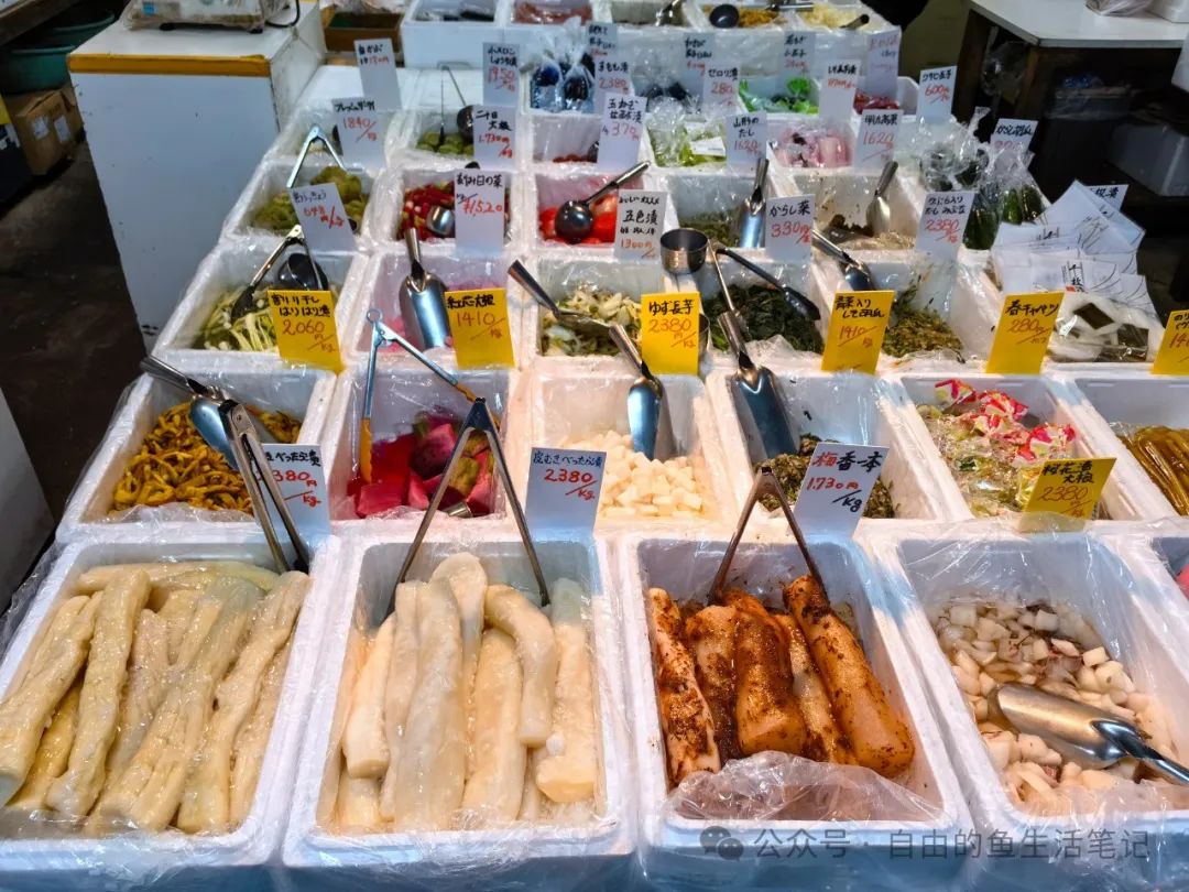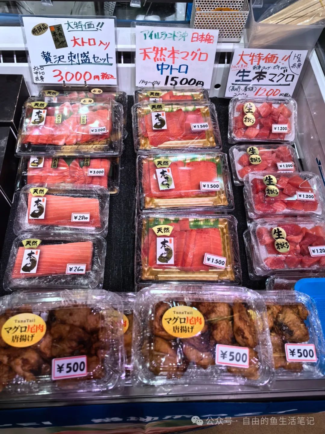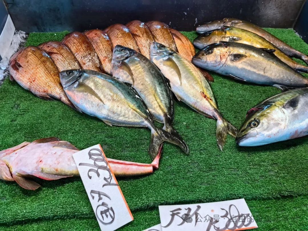 从一个个摊位前走过,没有时间细看,只是匆匆浏览,大致了解一下,快速拍几张照片而已,有的店摆着禁止拍照的牌子,因此没有拍太多照片,日本是岛国,海产品丰富,早上的海鲜水产看上去确实很新鲜,日本人细致,收拾得整齐干净,让人看着很有购买的欲望。