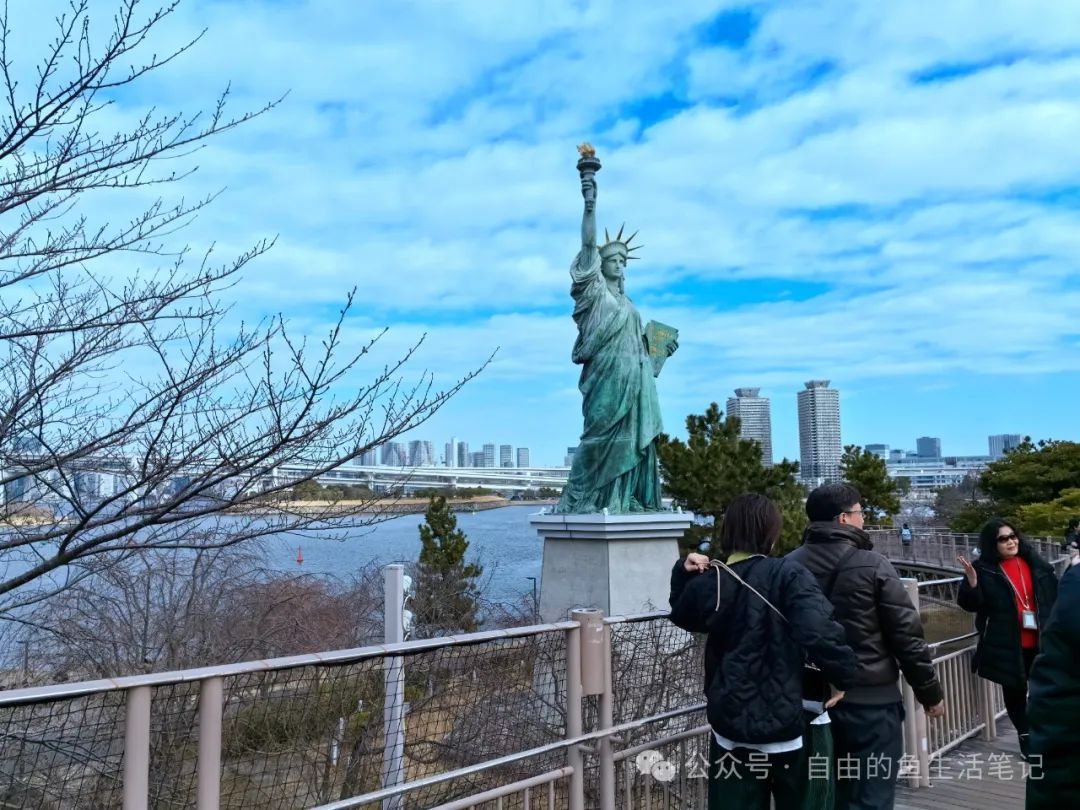 第一站,小白说去台场,我对台场一无所知,百度了下:台场或称御台场(お台场),位于东京都东南部东京湾的人造陆地上,是东京最新的娱乐场所集中地,受到人们,尤其是年轻人的青睐。台场的取名有这样一段来由:1853 年,美国人佩里率船队来到日本,当时东京还称江户,由于防卫上的紧急需要,匆忙赶制了海上炮台设置在此御敌,从此这里便称为台场。因为早上醒得早,地铁上迷迷糊糊睡了一小觉,到达之后,发现靠近海边,是一个海滨公园,还有自由女神像,旁边有商场和游戏厅,这里的商业和娱乐设施很有名,不过我们到的时间太早,还没开始营业。