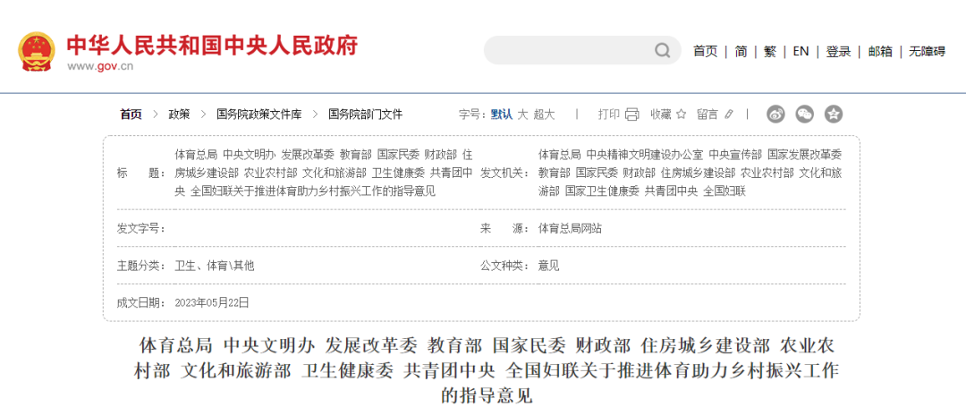 【主要内容】到2025年,建立健全体育助力乡村振兴政策举措和工作机制,乡村全民健身公共服务体系更加完善,创建形成一批体育助力乡村振兴示范案例,体育助力乡村经济社会发展成效显现。到2035年,与社会主义现代化国家相适应的全民健身公共服务体系在乡村全面建立,乡村体育健身和运动休闲成为普遍生活方式,运动促进健康作用凸显,乡村体育产业发展更有活力,乡村体育文化更加繁荣。