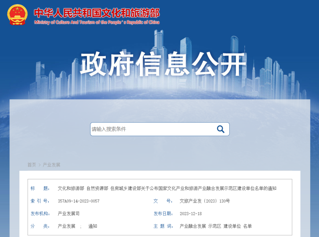 【主要内容】坚持以文塑旅、以旅彰文,推进文化和旅游深度融合发展。经综合研究,确定了国家文化产业和旅游产业融合发展示范区建设单位名单共50个。