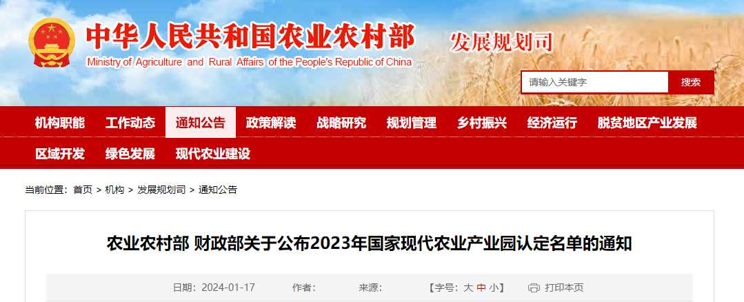 【主要内容】经产业园所在地县级人民政府申请、省级农业农村和财政部门审核推荐、专家评审和公示等程序,农业农村部和财政部决定将北京市通州区等44个现代农业产业园认定为国家现代农业产业园。
