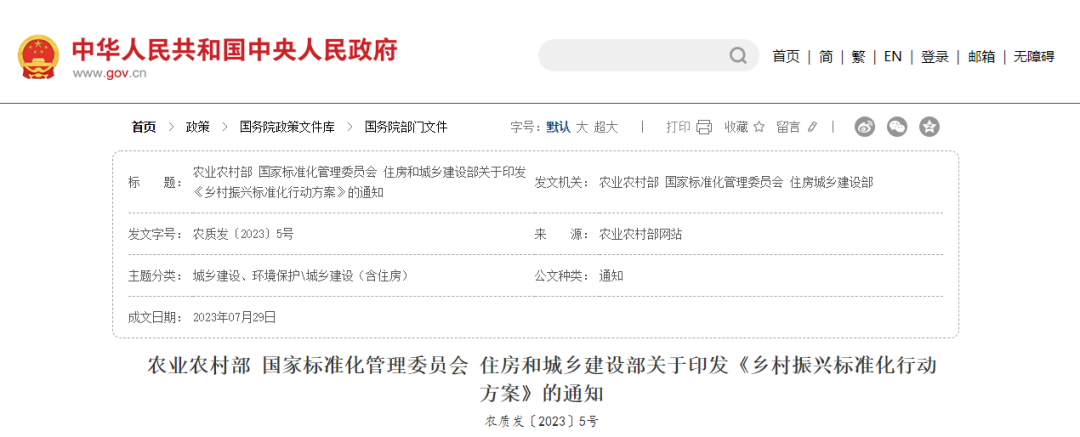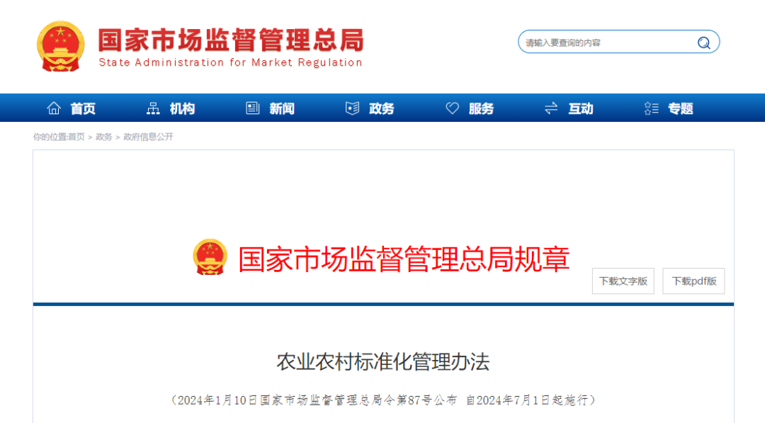 【主要内容】本次修订的主要内容和亮点包括:一是将规章适用范围从单一的农业拓展到农业农村领域,对农业农村标准的定义和范围进行界定,将农村设施环境、农村公共服务、乡村治理等技术要求纳入农业农村标准化工作。二是明确农业农村标准制定要求,将其聚焦于解决农业农村领域突出共性问题、提高农产品质量和效率、提升乡村治理能力、保护生态环境等。三是明确农业农村国家标准、地方标准范围,规定农业投入品及一般性农产品质量、检测方法原则上不制定地方标准;鼓励社会团体根据市场需求和创新发展需要,制定团体标准。四是突出标准实施手段的创新,规定标准化行政主管部门会同有关行政部门采用信息化等手段,加强标准宣贯,因地制宜推动农业农村标准实施与应用。(2024年7月1日起施行)