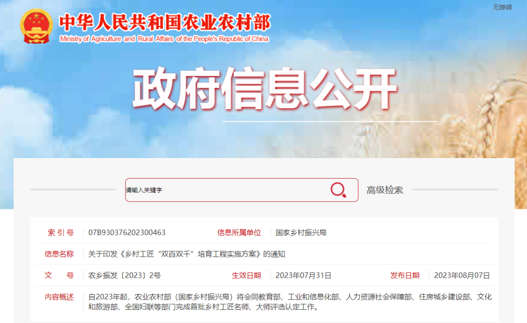 【主要内容】自2023年起,启动实施乡村工匠“双百双千”培育工程,力争到2025年底在全国认定百名乡村工匠大师、设立百个大师传习所,认定千名乡村工匠名师、设立千个名师工作室,弘扬传统技艺所蕴含的文化精髓和价值,活态传承发展优秀传统乡土文化,顺应乡土人才成长规律,激发乡村工匠内生动力,扶持乡村工匠领办创办特色企业,打造乡村工匠品牌。