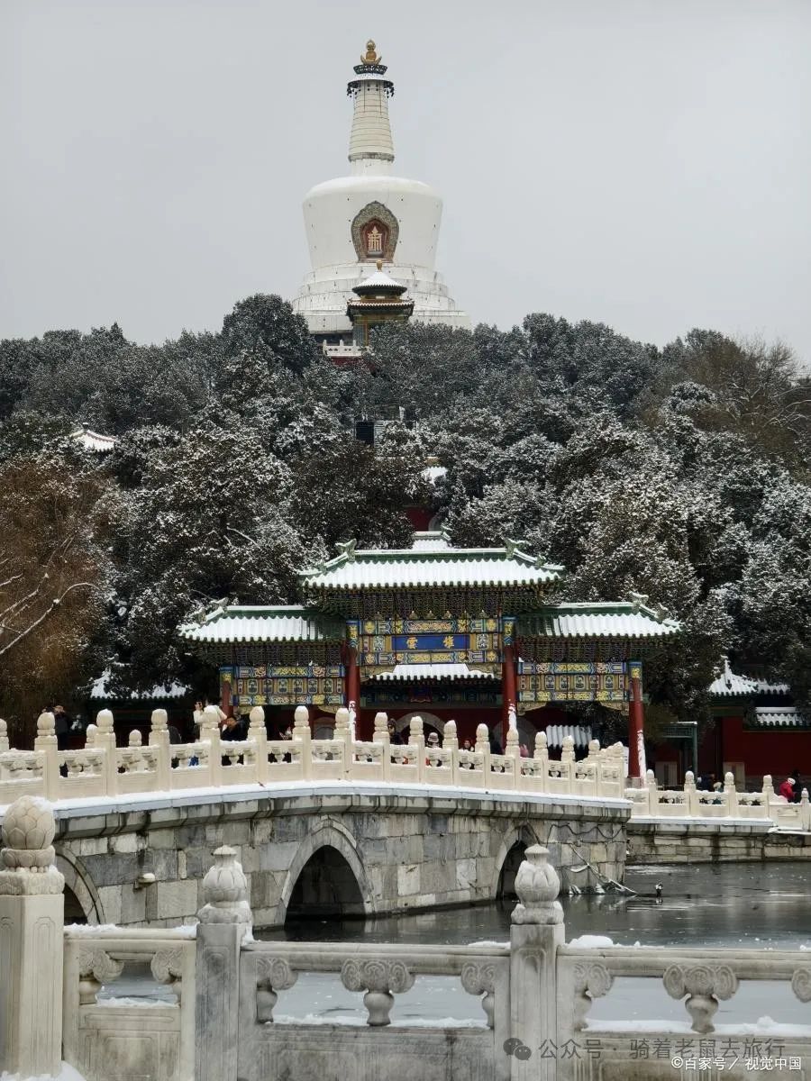 再来是北海公园。这里有美丽的湖泊、精致的园林景观和各种休闲设施。你可以租一辆自行车环湖骑行,或者坐在湖边享受一下宁静的时光。公园里还有各种小吃摊和儿童游乐设施,非常适合全家出游!