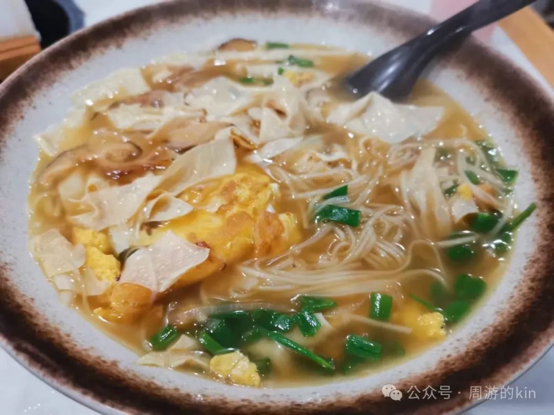 上图,楠溪农家烧纱面(18元),说是当地传统做法,就是放些肉碎、鸡蛋、腐皮而已。