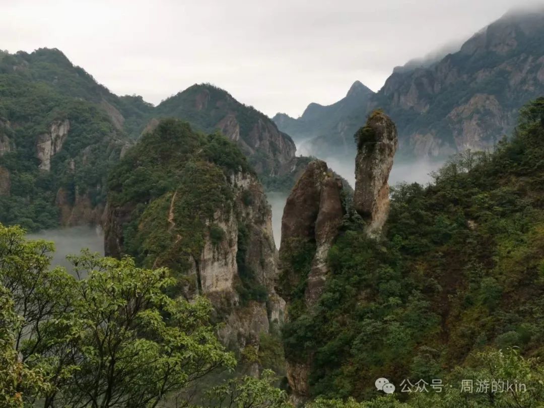 都说雁荡山之名源于“岗顶有湖,芦苇丛生,结草为荡,秋雁宿之”。但此句描述出自何处?待考。2005年,雁荡山被联合国教科文组织列为世界地质公园。总面积450平方千米,分北雁、南雁2大片区,但两地却相距约150公里。最高海拔1150米。共有8大景区,550个景点,其中,北雁的灵峰、灵岩和大龙湫被誉为“雁荡三绝”。昨晚夜逛灵峰,今天重点游灵岩和大龙湫,也好奇好事去瞄一眼三折瀑。