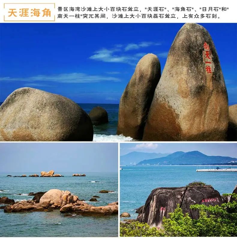 前往【天涯海角】(游览不少于180分钟)这里是世界华人的心理地标,历史文人墨客的灵感乐土。天与地,地与海的 交际处,万物情感融合于此。深厚亲情的汇聚地,长久友情的见证地,追求爱情的目的地。在天地山海之间,进入一段触及心灵的对话,让时间诉说永恒,铭记你一生的幸福。