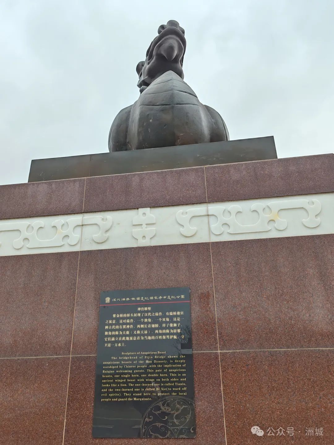 穿过神兽守护的门阙,走在神道上,再踏上一条麻石修砌的石桥,跨过紫金湖,前面又是一道阙台。