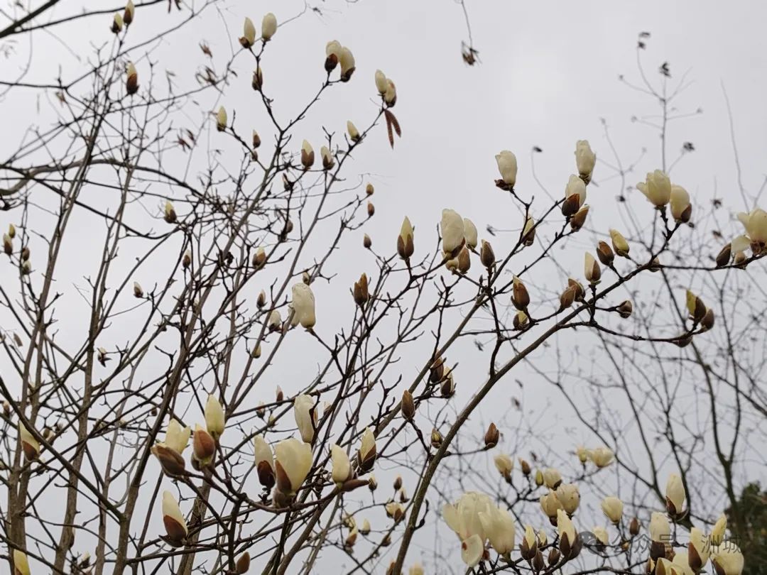 路上有株玉兰花已经绽放,洁白的花朵,实在惹人怜爱。桃花的枝条,还是光秃秃的,现在还没有到它们争春的时候。