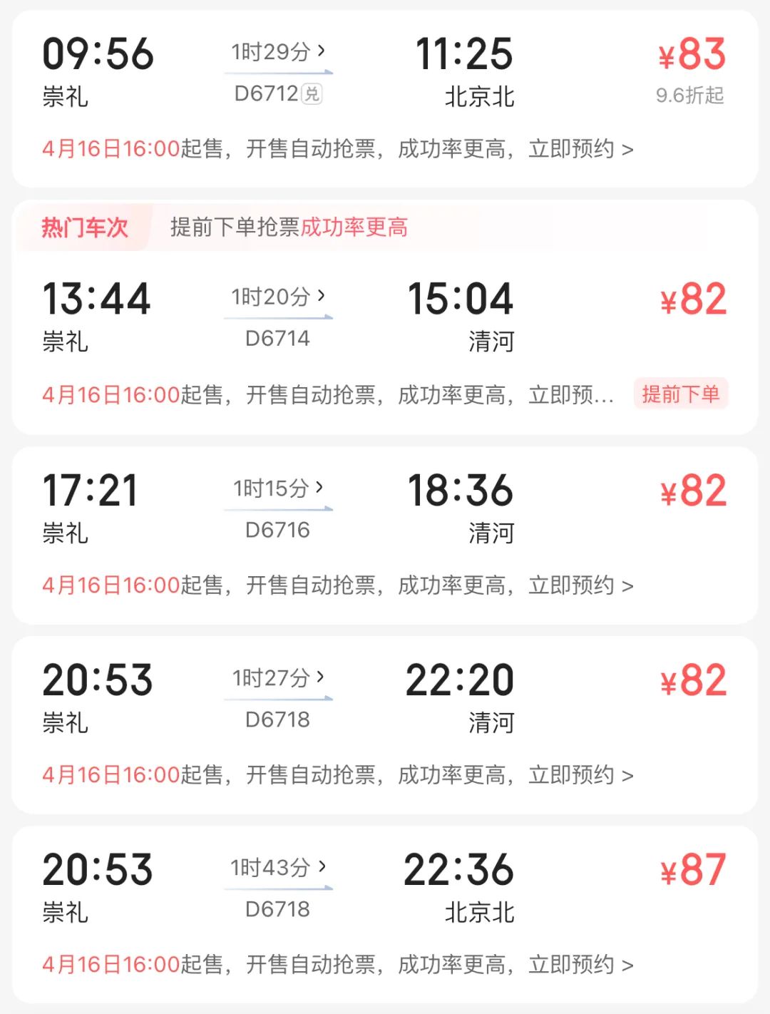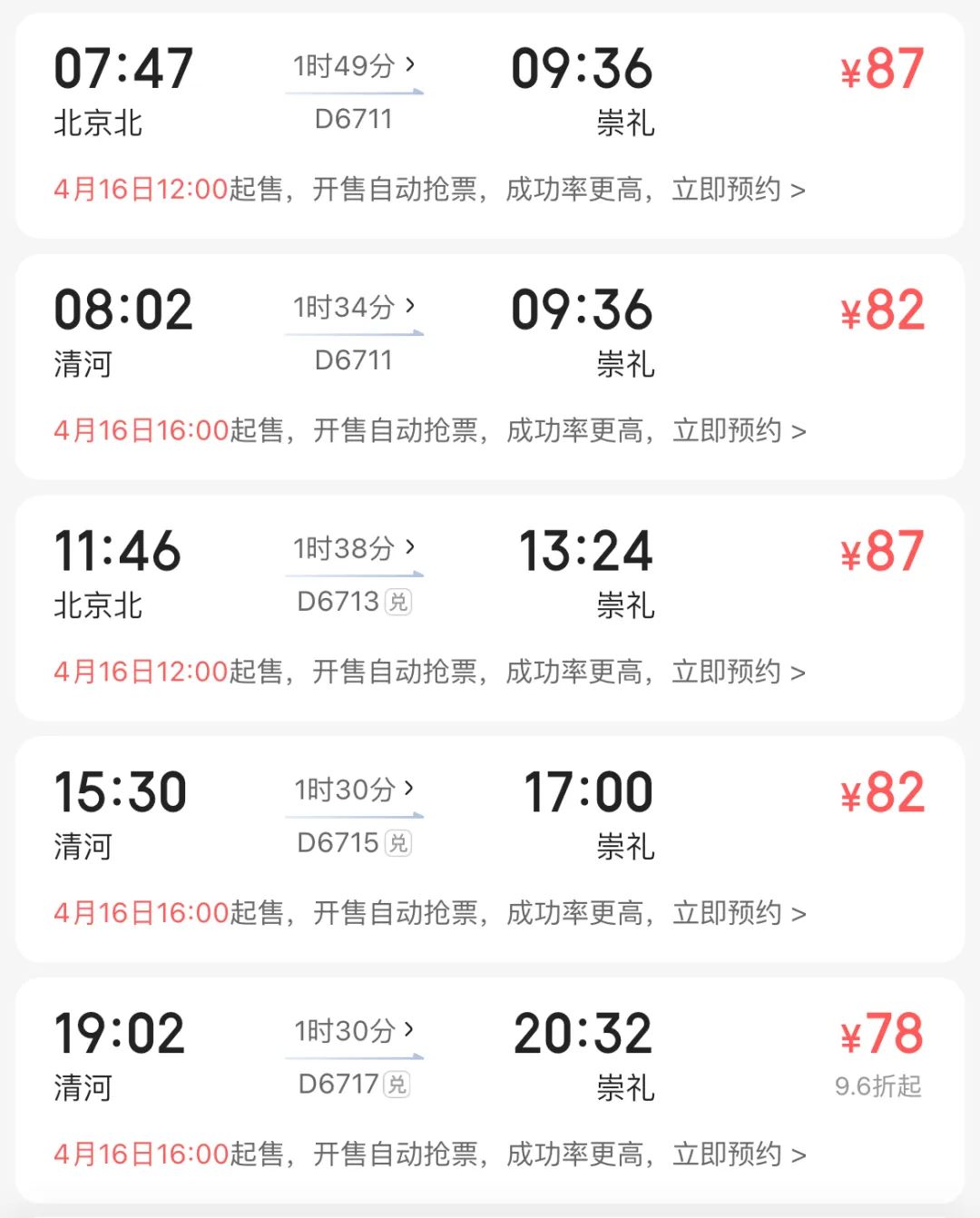 如上图、北京往返崇礼信息、届时此段行程车票资源紧张、如15h内完赛、返程可购买17:21车次较为适合、否则只能20:53车次、抵京已夜间22:30