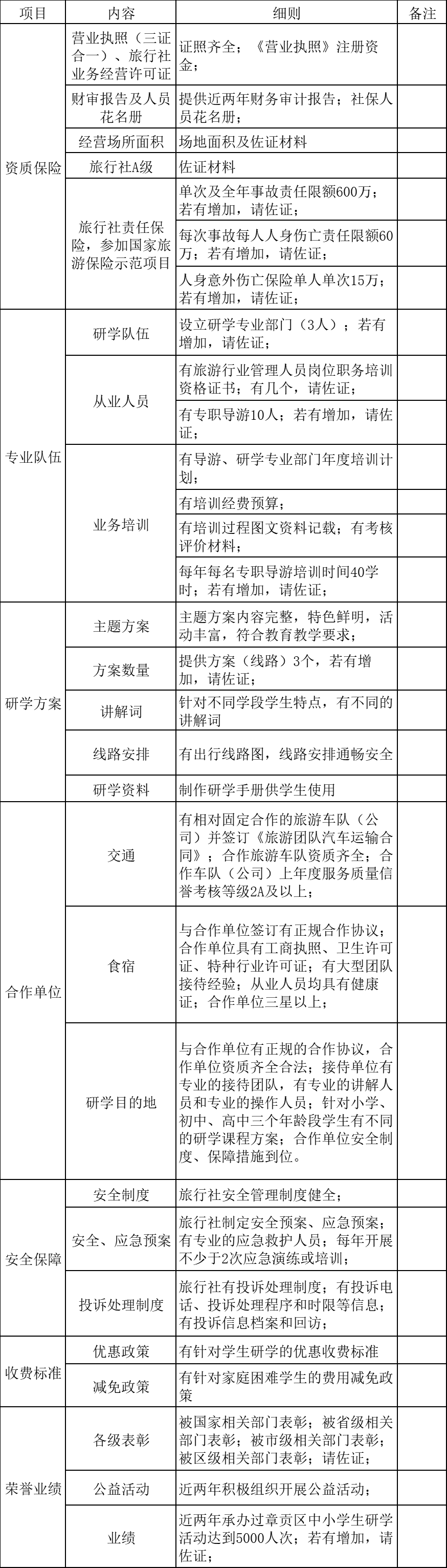 1.旅行社遴选三家;劳动实践基地遴选三家;