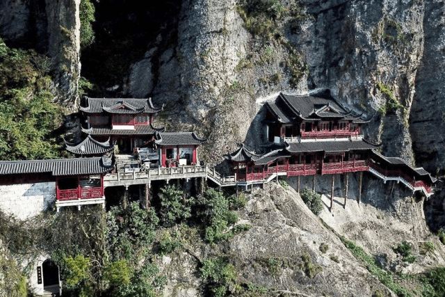 在大慈岩的周围,有一处非常特殊的地方,叫做江南悬空寺,有人在这里修建了一座天栈云渡,让这座山洞看起来更加的诡异,之所以说比不上山西的恒山,就是因为一说到悬空寺就是恒山的标志,这里的风景也很好,是一个很好的旅游胜地,如果你想要去的话,可以去那里看看。