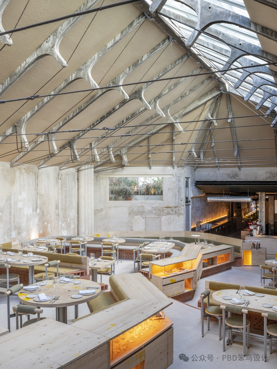 西班牙的Tramo餐厅,位于一家大型工业空间。这个大型空间是20世纪50年代建造的仓库。