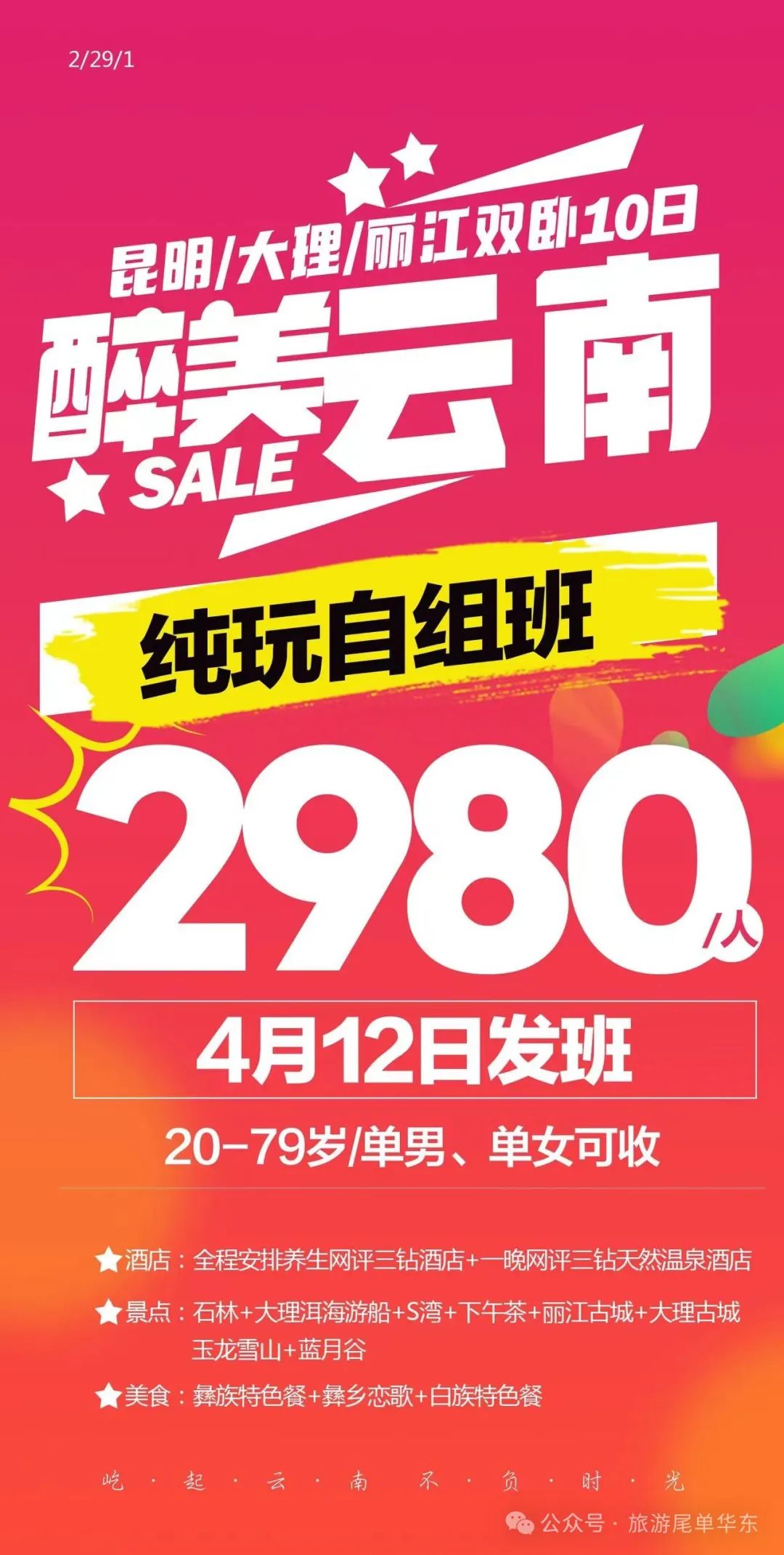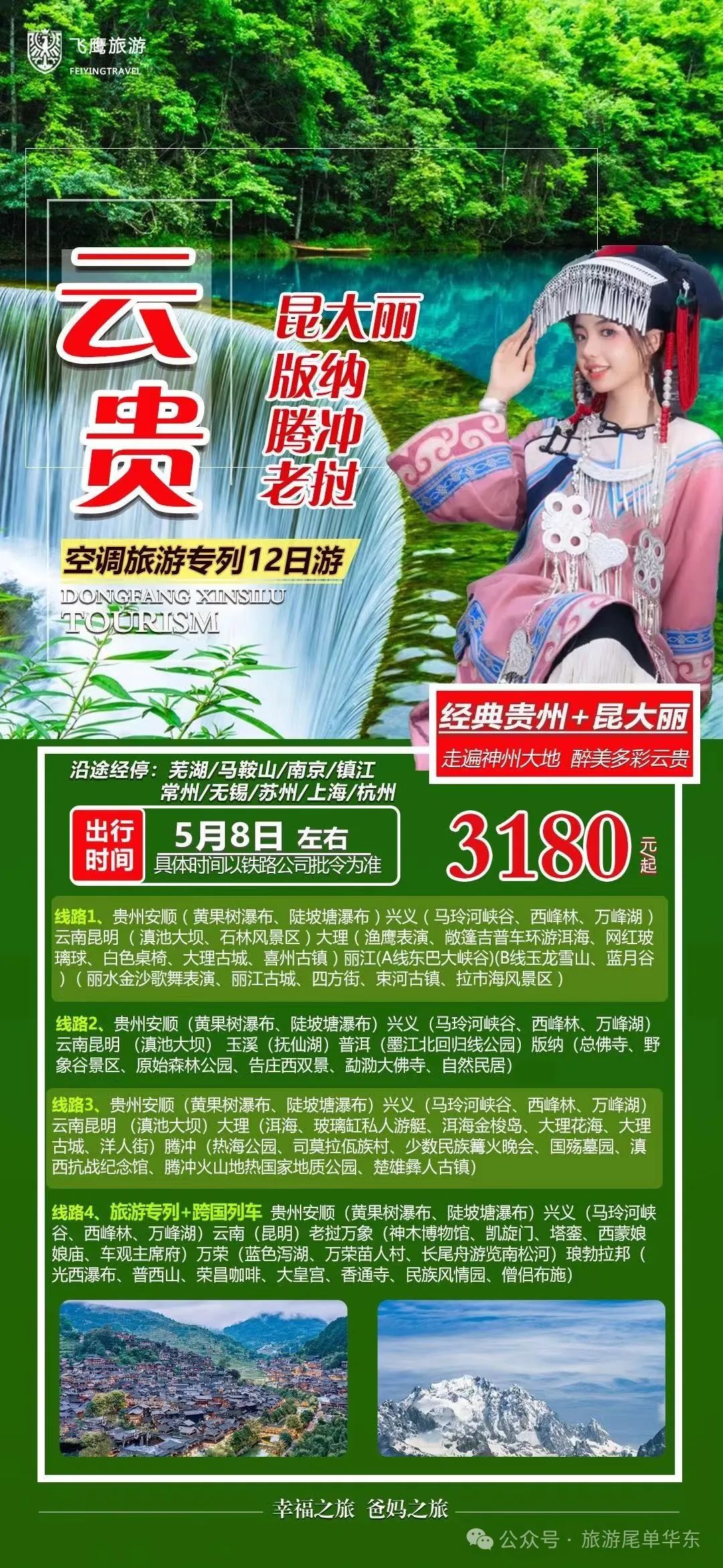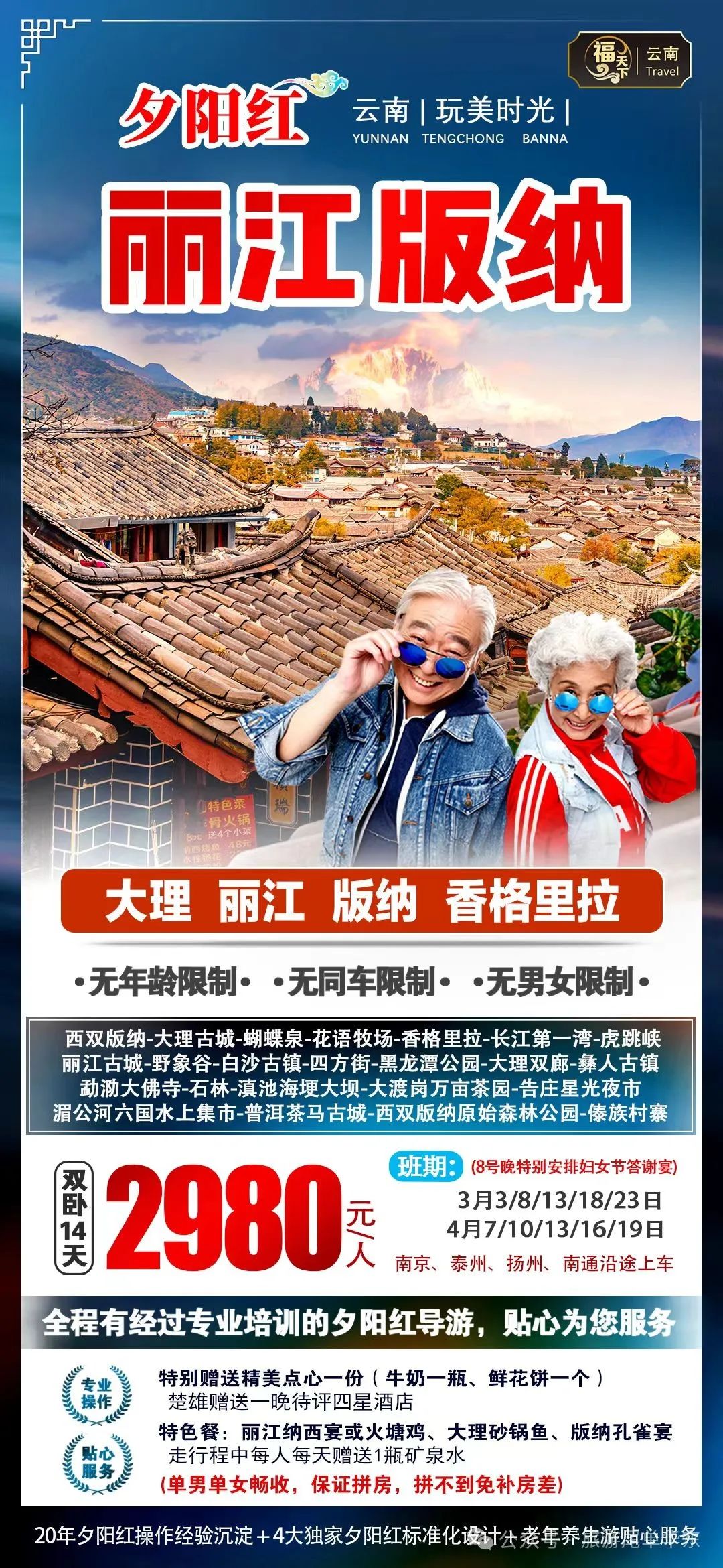 昆明大理丽江双卧十天(提前15天报名、保证下铺)