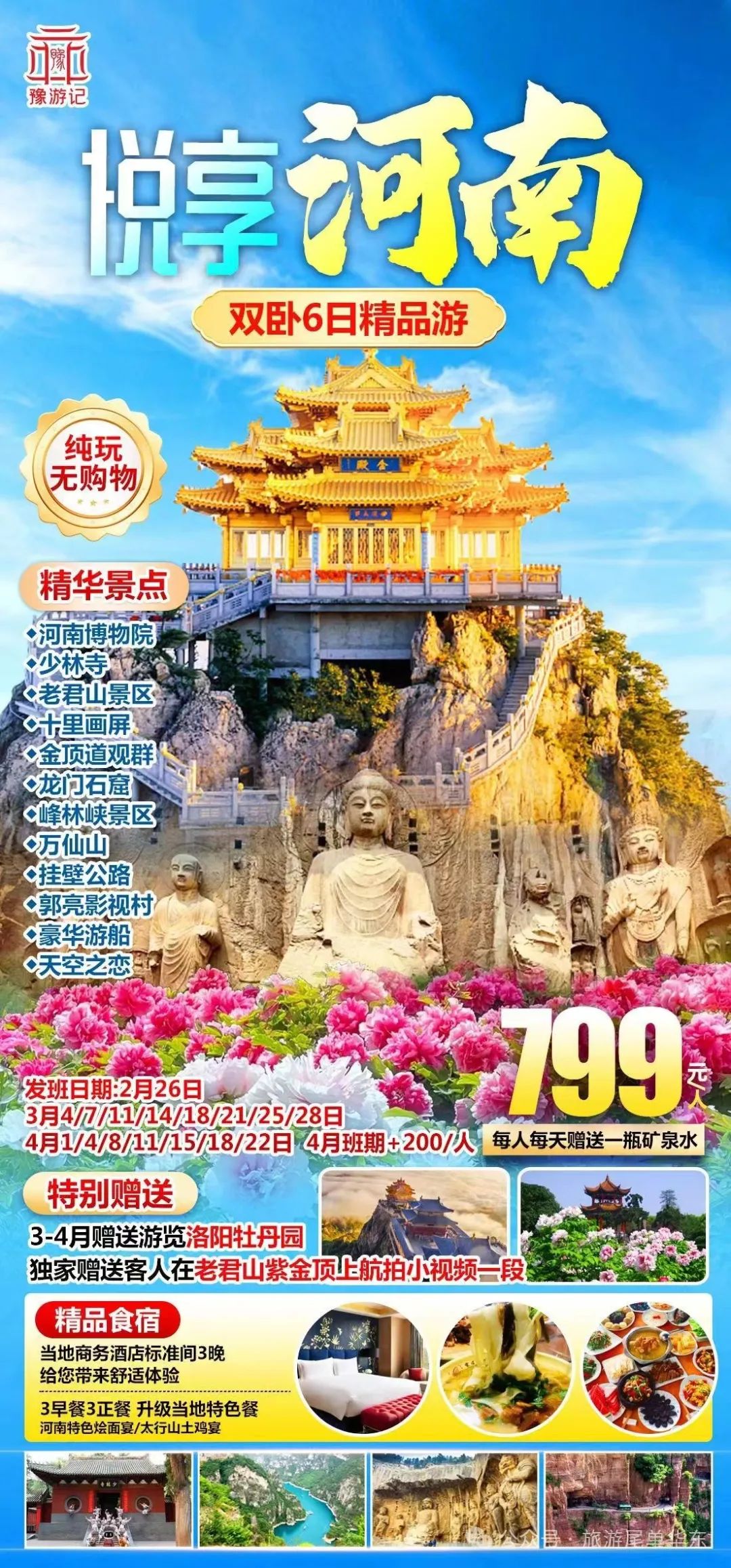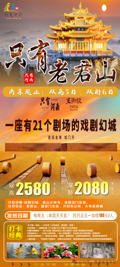 💎精华景点:网红老君山、金顶之巅、十里画廊、龙门石窟,少林寺、河南博物院,郭亮村、万仙山、挂壁公路,峰林峡、爱情公路、翡翠湖、天空之恋等精华景区!