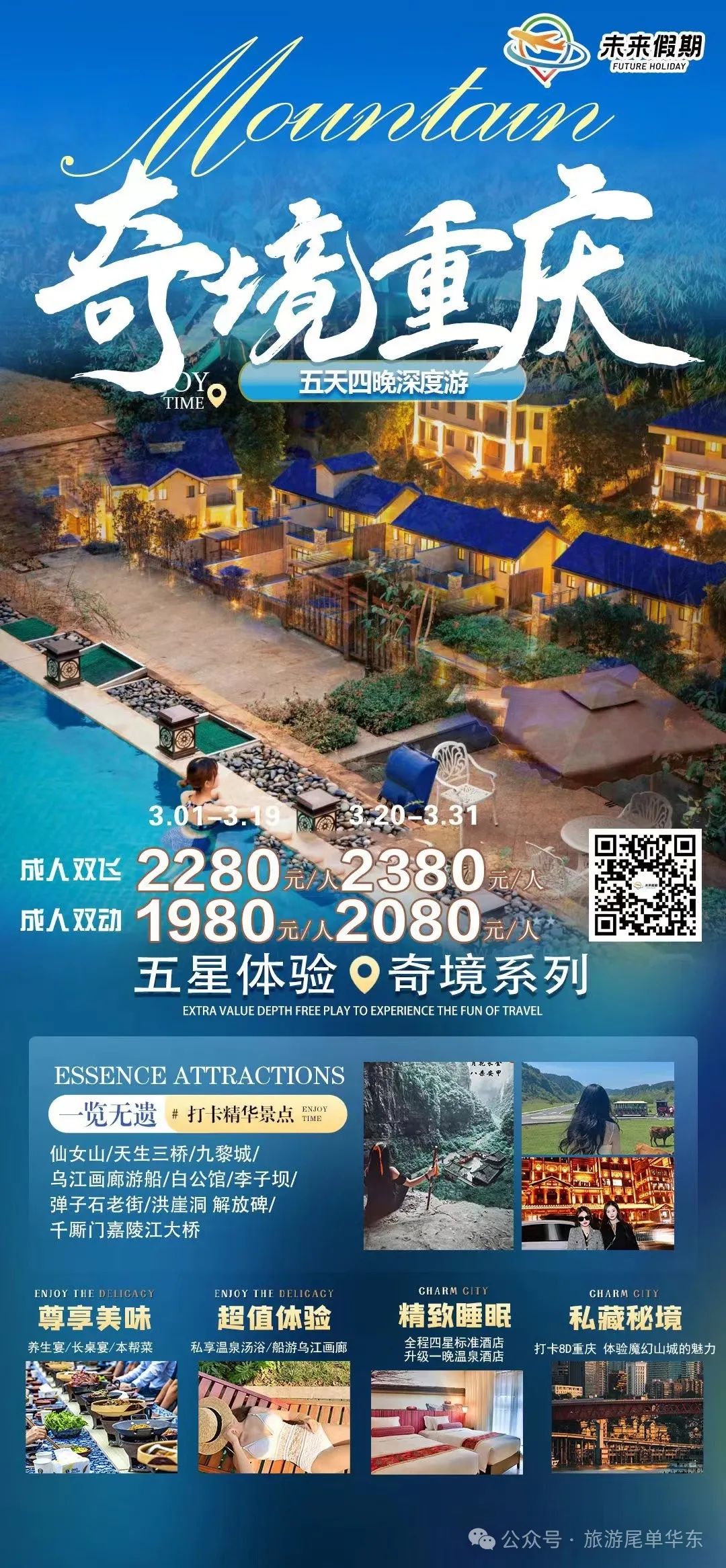 轻奢住宿:全程入住四星酒店,升级一晚统景温泉酒店
