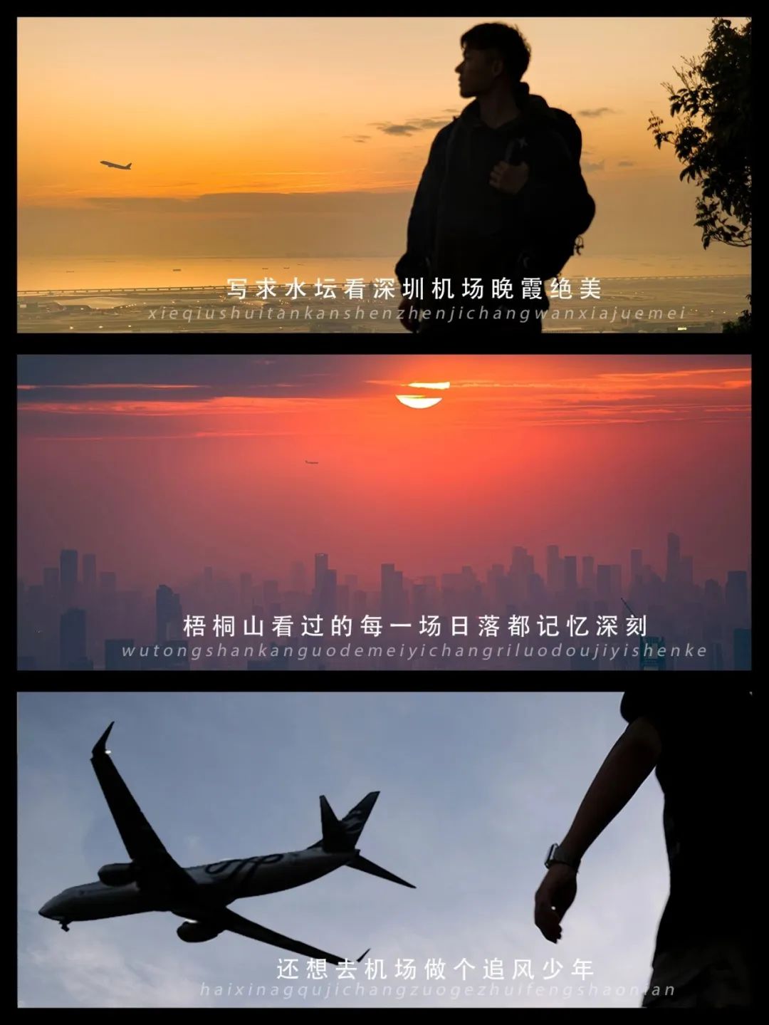 铁仔山看飞机穿过落日,治愈我很多次