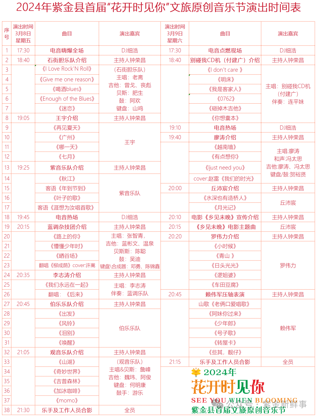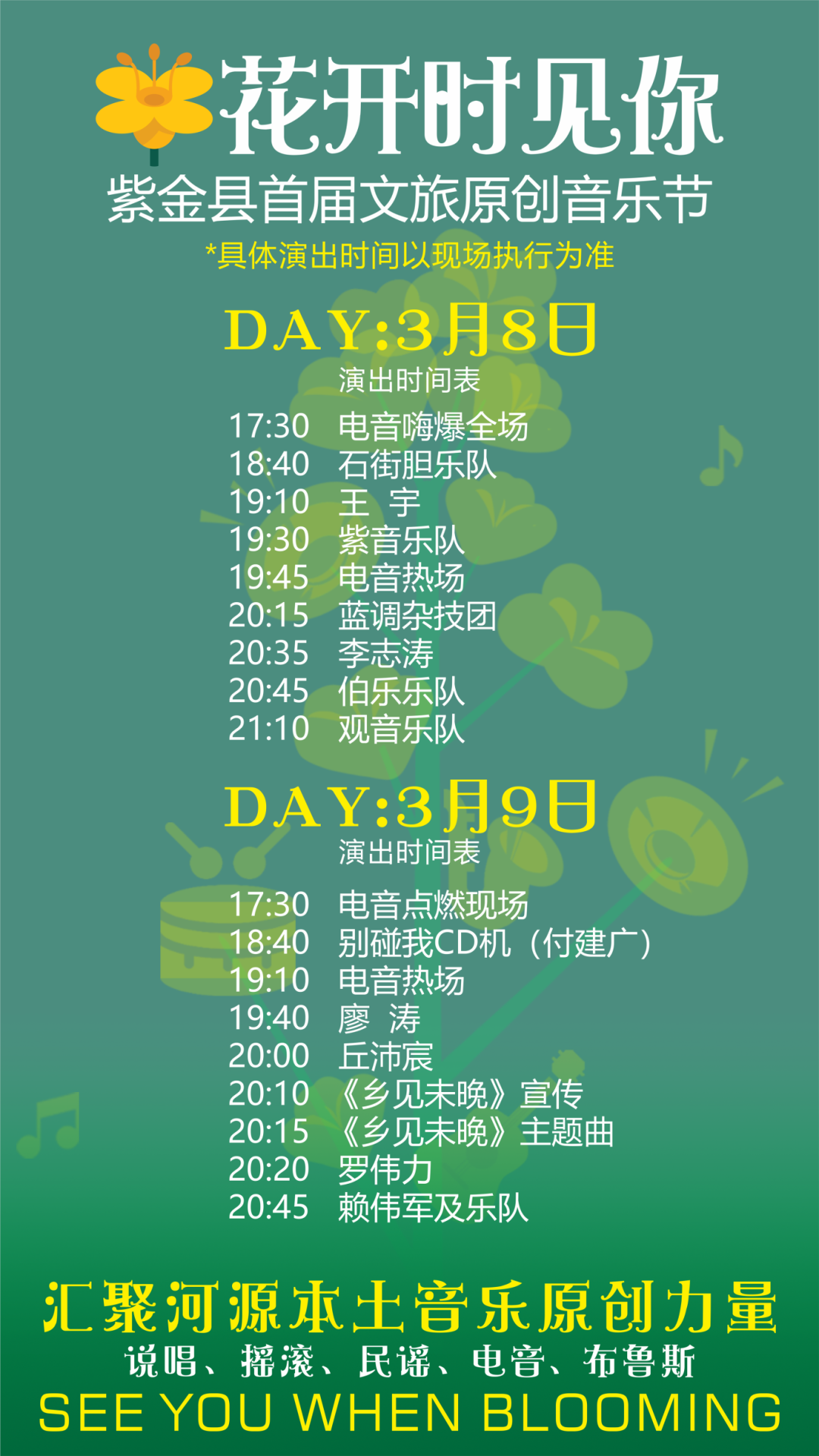 紫金首届文旅原创音乐节!明天下午在龙窝“花开时见你”!!