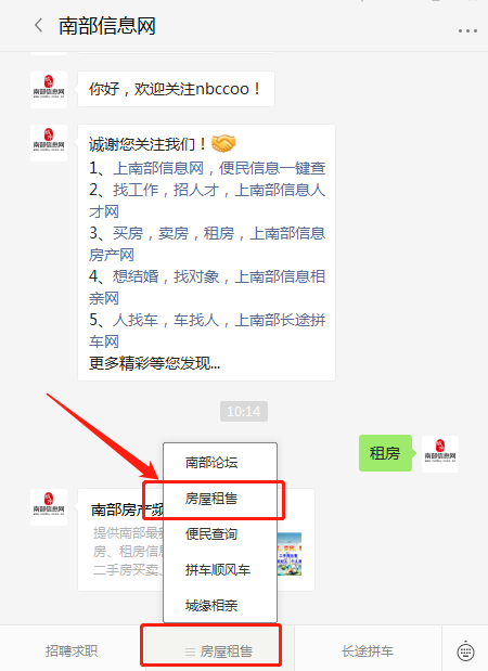 进入南部信息网公众号
