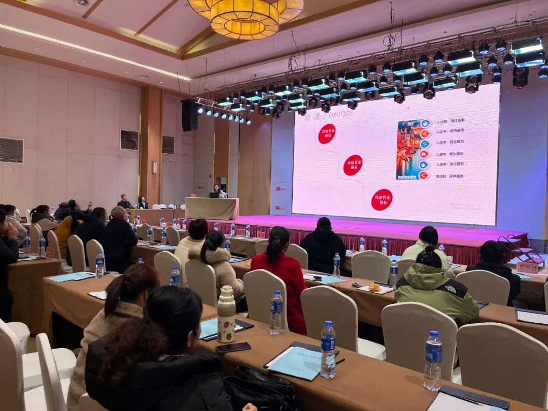 在青松岭阿尔卡迪亚酒店举办了青松岭镇乡村旅游暨民宿发展培训班,共有村干部及民宿经营者150余人参加。培训会邀请了承德市两位专家就民宿规划运营和民宿管家服务技能提升进行了专业授课,发放了《承德市民宿文件汇编》150余册。