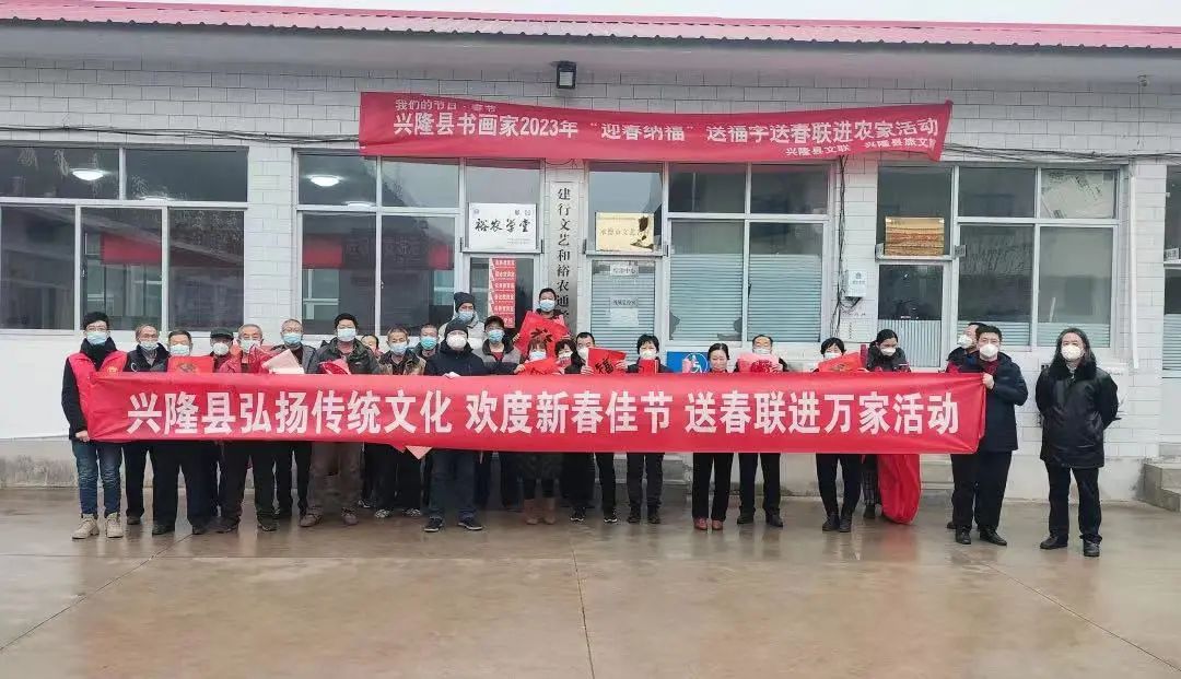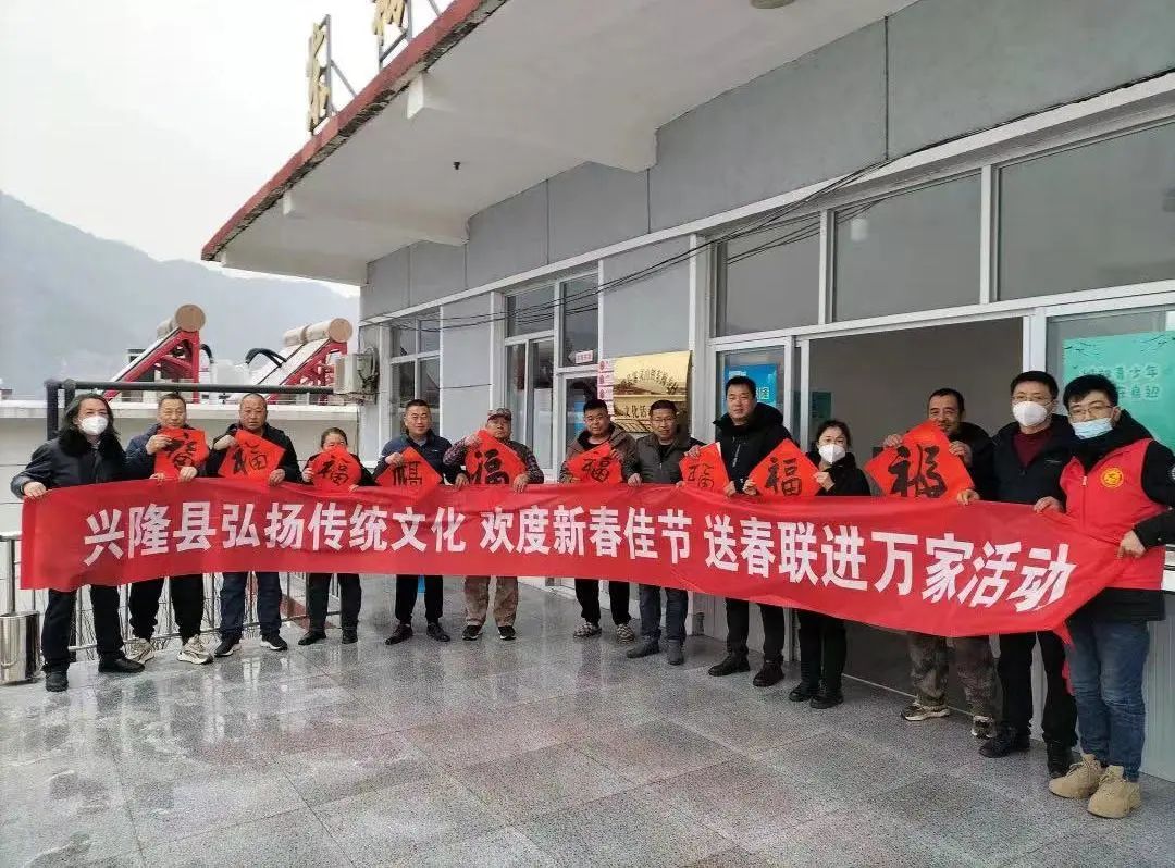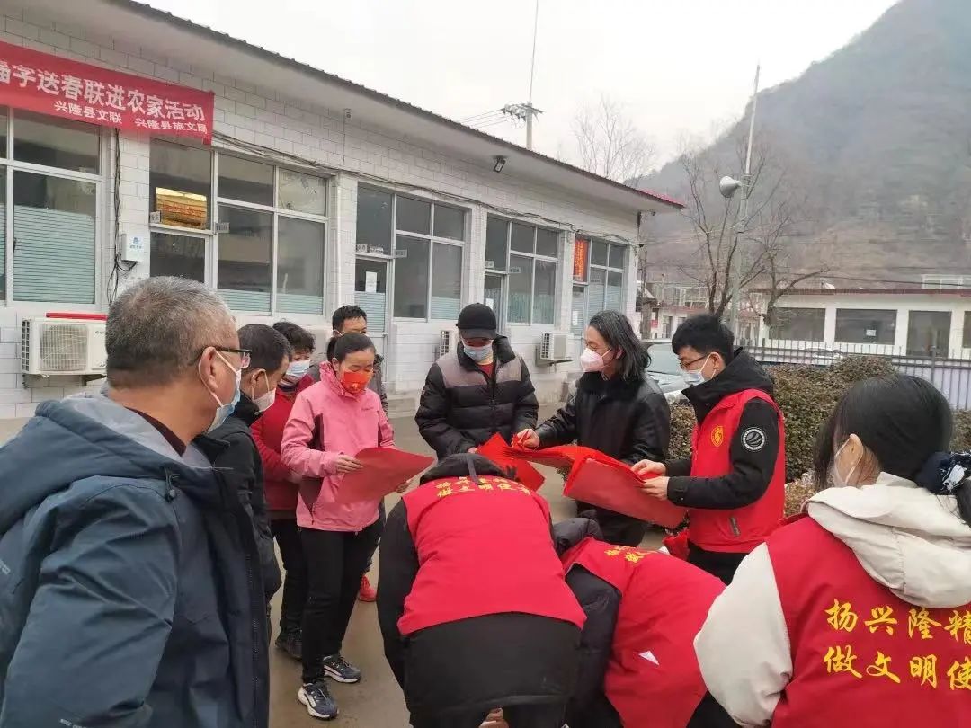 2023年1月6日,兴隆县文化馆组织我县10余名书法家在兴隆县文化馆展厅挥毫泼墨,书写春联300余幅,将春联送到我县青松岭镇老营盘村、雾灵山镇东梅寺村村民手中。送春联活动在我县已坚持16年之久,既是弘扬中华优秀文化传统的一项内容,也是倡导健康民俗文化的手段。通过活动浓郁年俗乡情,扮靓美丽乡村,为新年增添喜庆氛围。