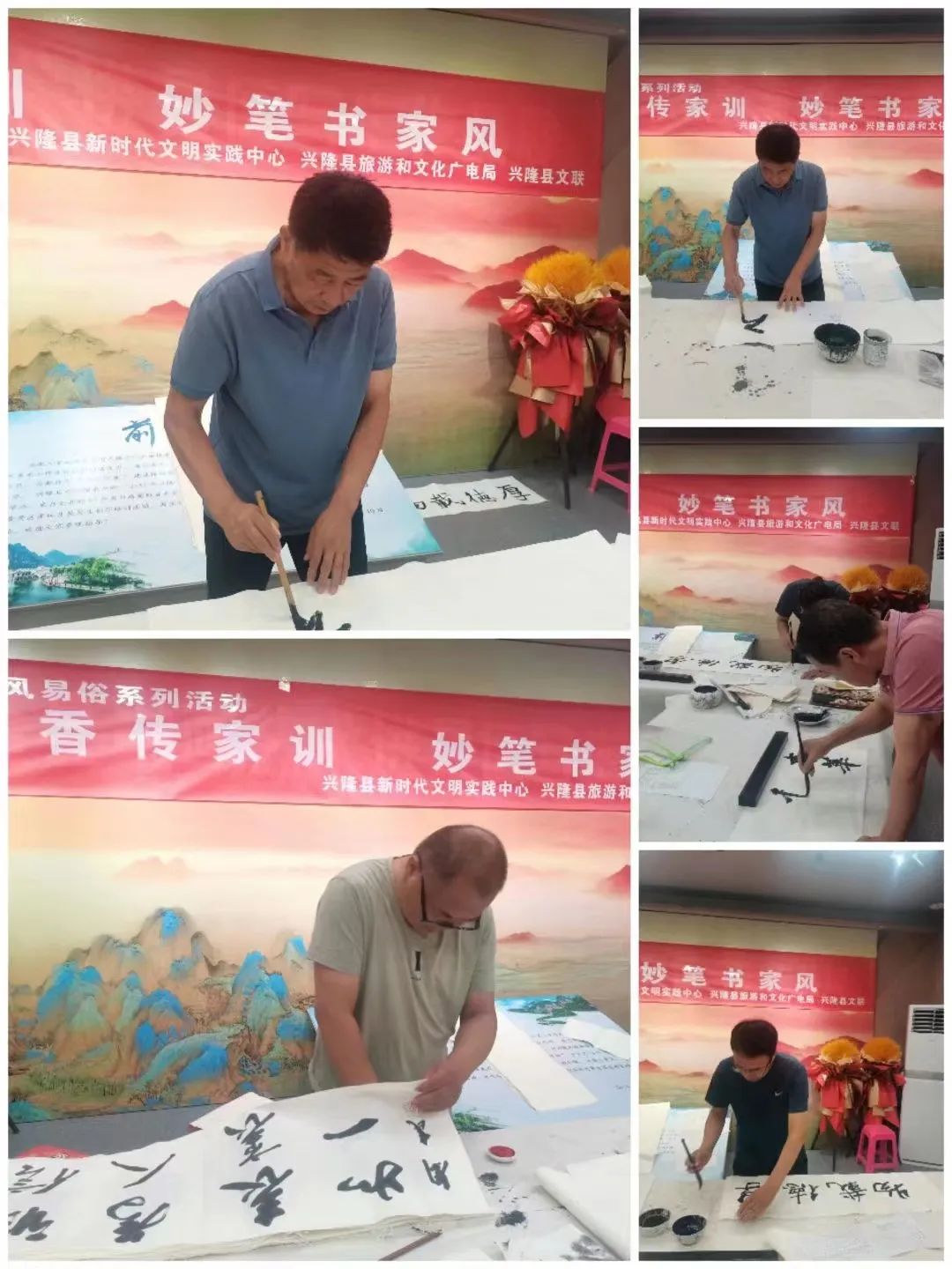 2023年8月25日,县文化馆组织书法家开展“墨香传家训、妙笔书家风”。书写家训200余幅,送到村民家中。