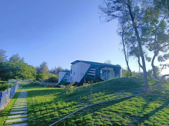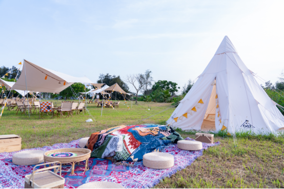 湖心岛露营基地占地4亩,基地建设整体以平地为主,坡地为辅,遵循了原始的地形地貌,于住宿区设计投放太空舱、原宿帐篷、团建天幕布、露天KTV等适配地形的移动设施,不破坏原生态,与自然融合,让游客沉浸于原生态美景的同时,享受现代旅游服务的便利。