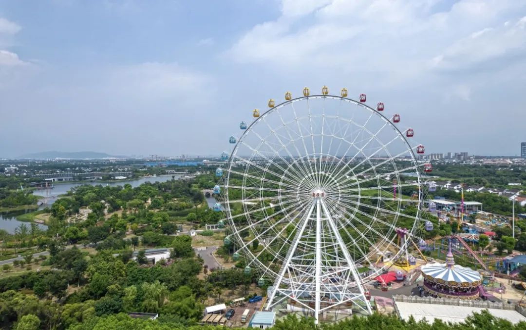 沿途绿树成荫,还能看到摩天轮和小火车~