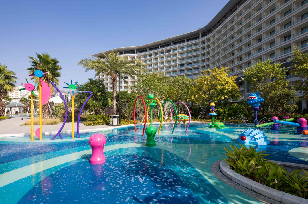 此外,酒店还设计了专门的户外儿童嬉水区,在泳池里也设计了不少互动装置。