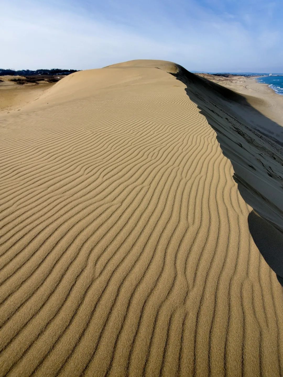 在鸟取砂丘的“马背”上,美丽的风纹从前往后荡漾。
