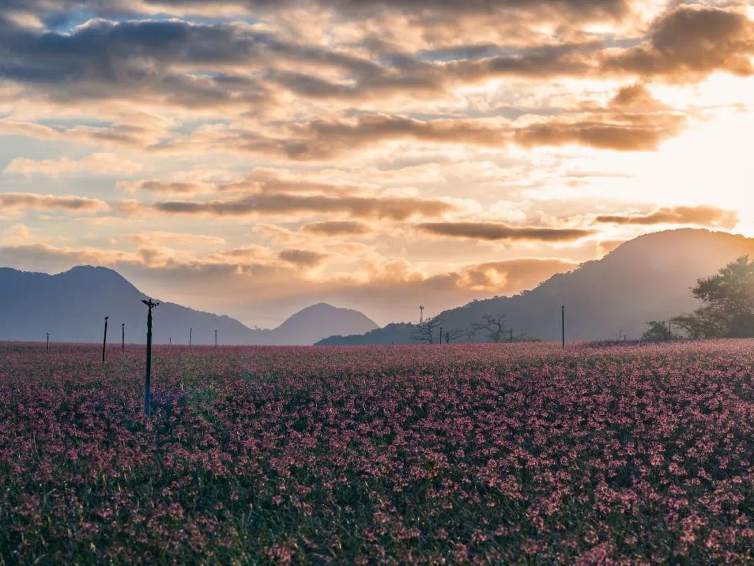 点评:大片的藠头花田和藠头花的色彩只有在一天中太阳升起的时候才能拍到,非常神奇。