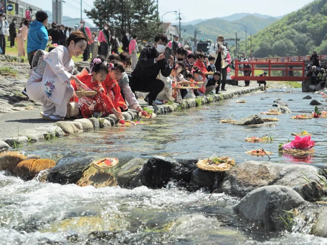 时隔4年,游客再次参加了放流人偶的活动,整个小镇热闹非凡。