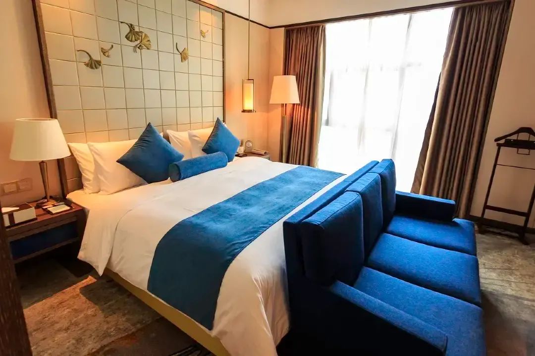 本次¥599/2晚的度假套餐入住的是高级大床房!房间面积在38-41㎡,色调温馨,墙面的银杏叶传递秋冬意象,松软的地毯也富有艺术气息。