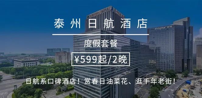 【提前约|节假日不加价】¥599起/2晚--游春日凤城赏油菜花!卧日航旗下高品质酒店!¥799两晚77m²行政套房,享泰州早茶!