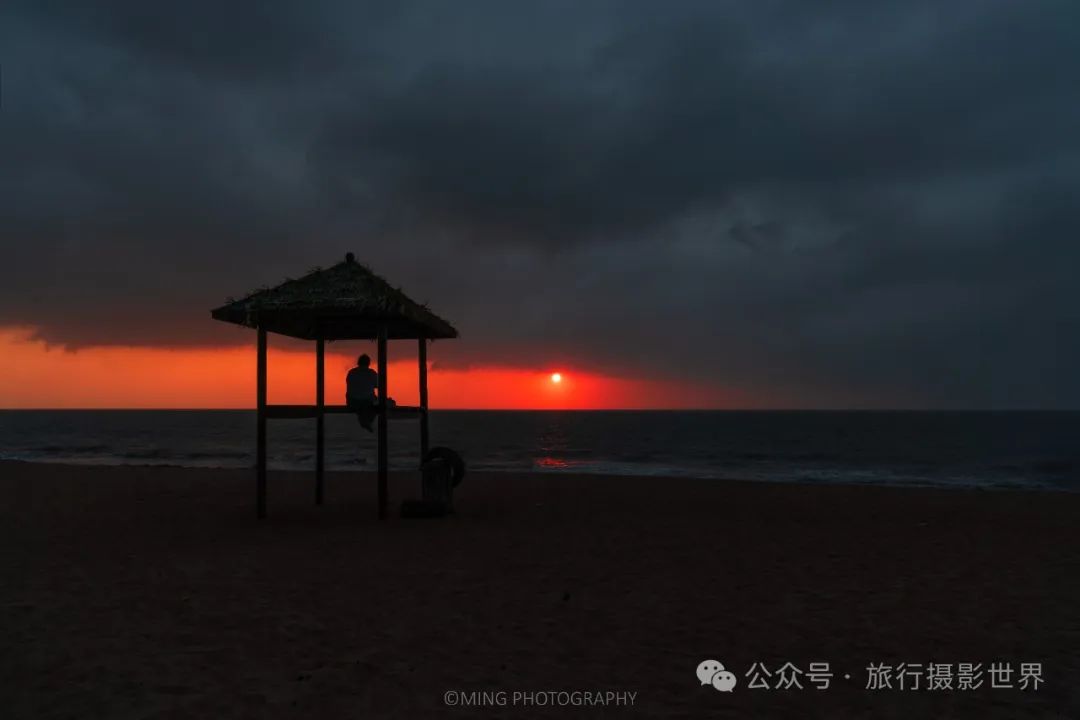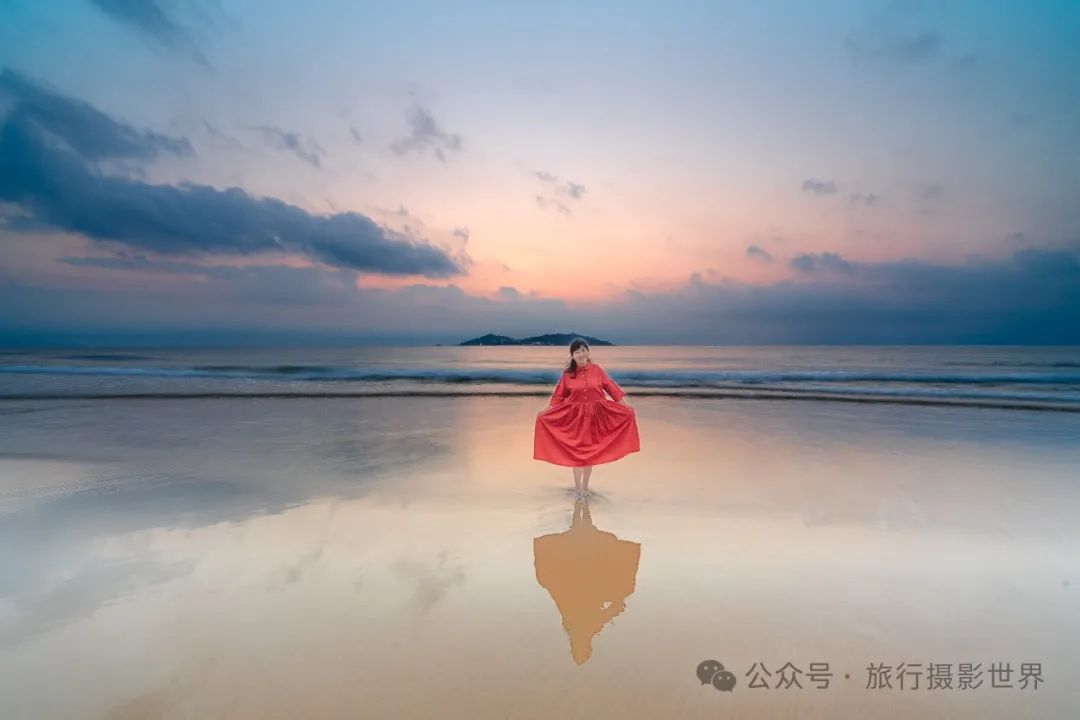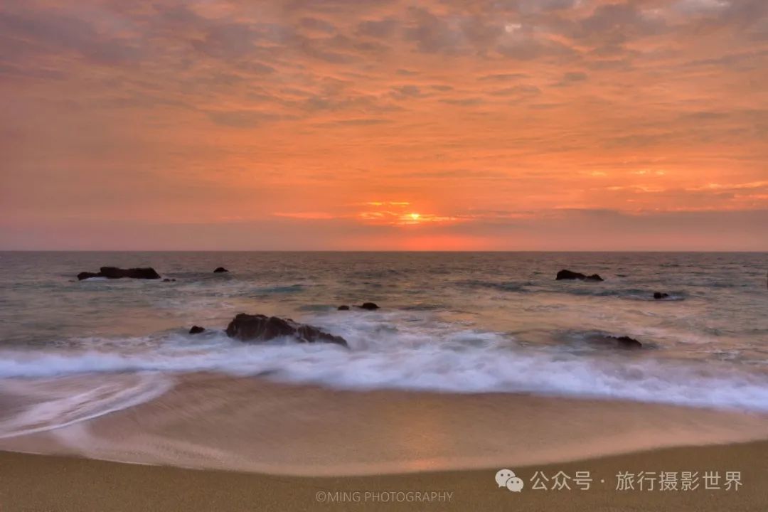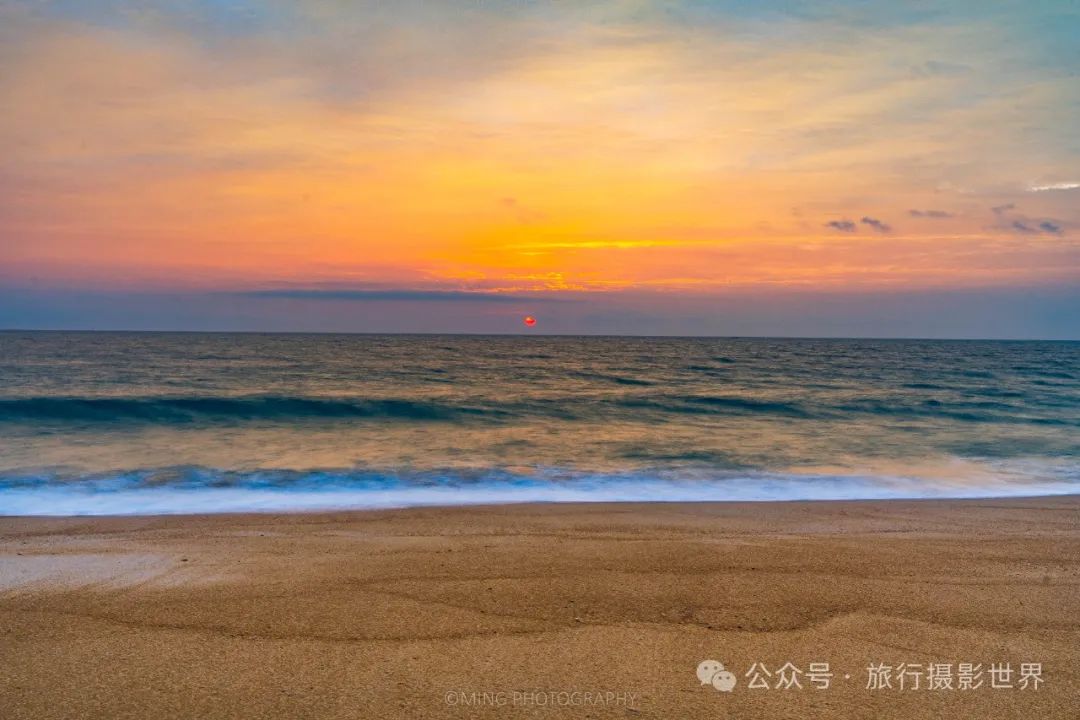 离博鳌的酒店只有19公里,但是限速30,要开半小时,最后一段是单车道的乡道。导航终点附近有一个道观,顺着车道就能走到海边。停好车,朝霞已经染红了天空。以为是个大景点,结果一个人都没有,一家人承包了整个海滩的日出。日出时间很短,大约只有10分钟,太阳就被云层遮盖了。
