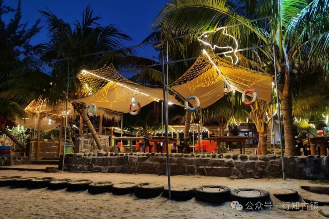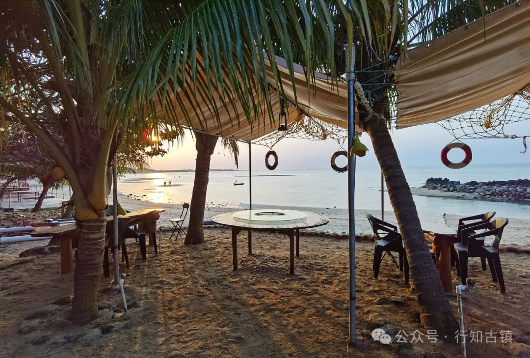 这里本是一个滨海渔村,海边有超过2公里长的一片沙滩。近年随着游客增多,当地渔民纷纷办起了农家乐,提供餐饮住宿服务,平时除了海口地区的本地人喜欢来此消暑休闲,也吸引了一些岛外游客。海滩边有十余家餐饮民宿,消费远低于东线的酒店。这些民宿设施虽然相对简陋,但出门便有无敌海景,周围幽静而空旷,椰风细沙银浪,斜阳晚霞火山,一派好风光。在这里每天还可以品尝新鲜打捞的海鲜,若是乐意,晚上还能去抓螃蟹,乘小船去海湾里捕鱼,可谓其乐融融。
