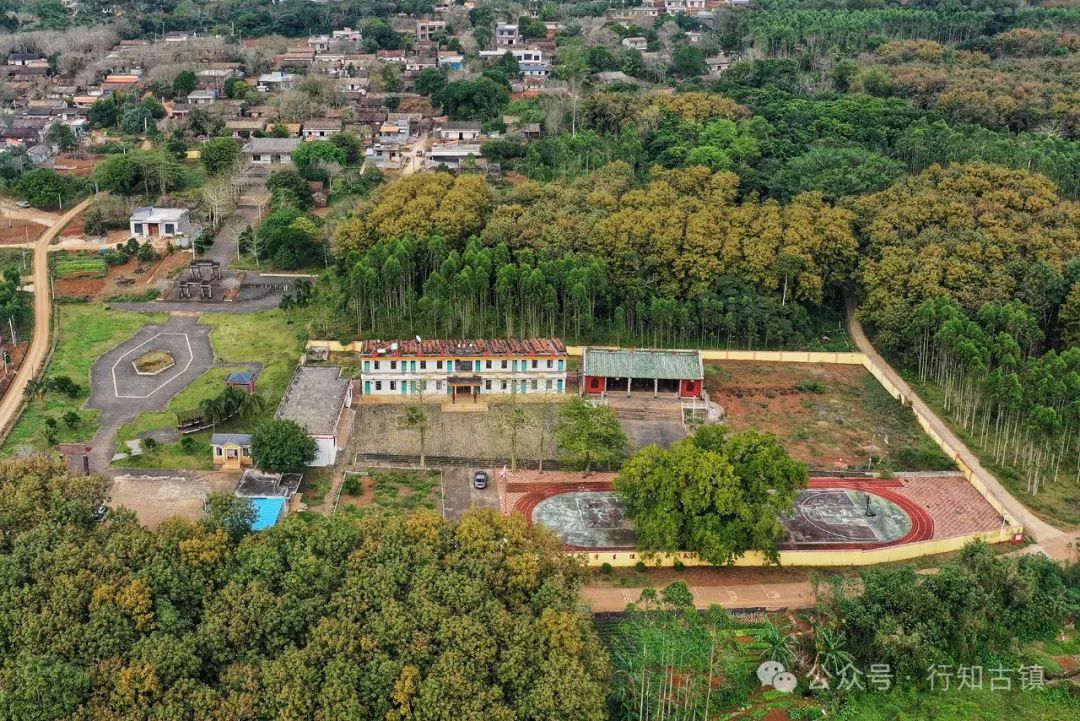 ↑透滩村。学校中有王氏宗祠,画面左后方为牌坊。