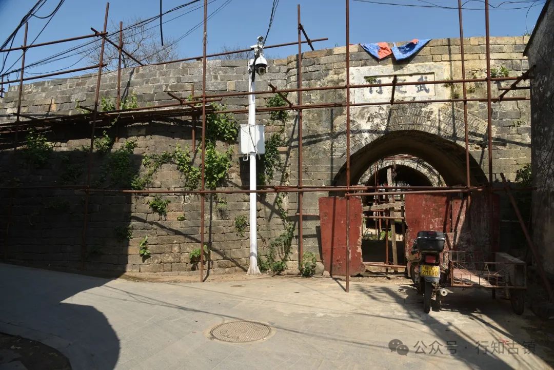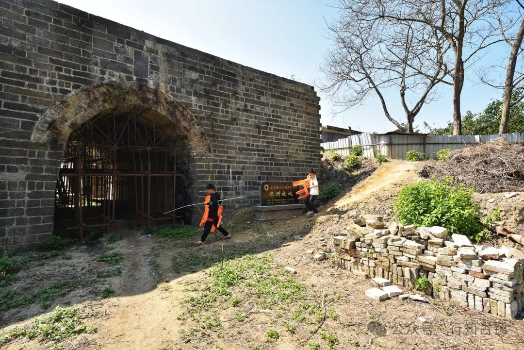 ↑儋州故城的标志建筑“武定门”正在围蔽修葺中。