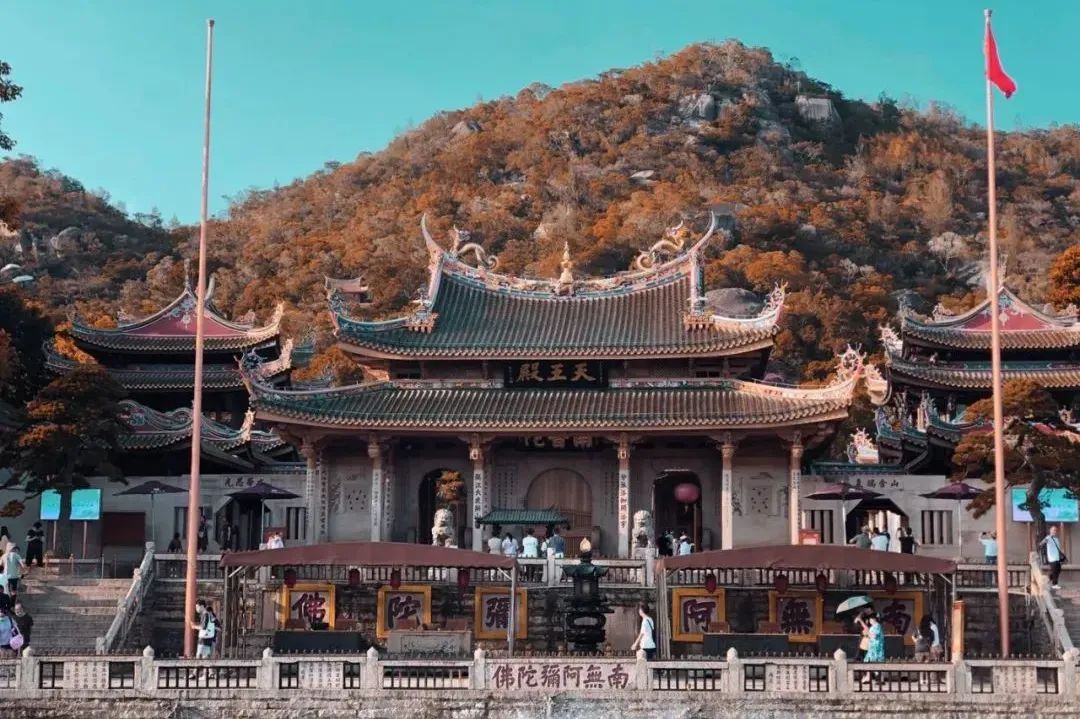 【南普陀寺】天王殿、大雄宝殿、藏经阁、左右厢房、钟鼓楼等构成的建筑群,雄伟、壮观 ,颇具佛教特色,是中国最早的佛教高等教育基地,也是全国唯一的佛教学院。