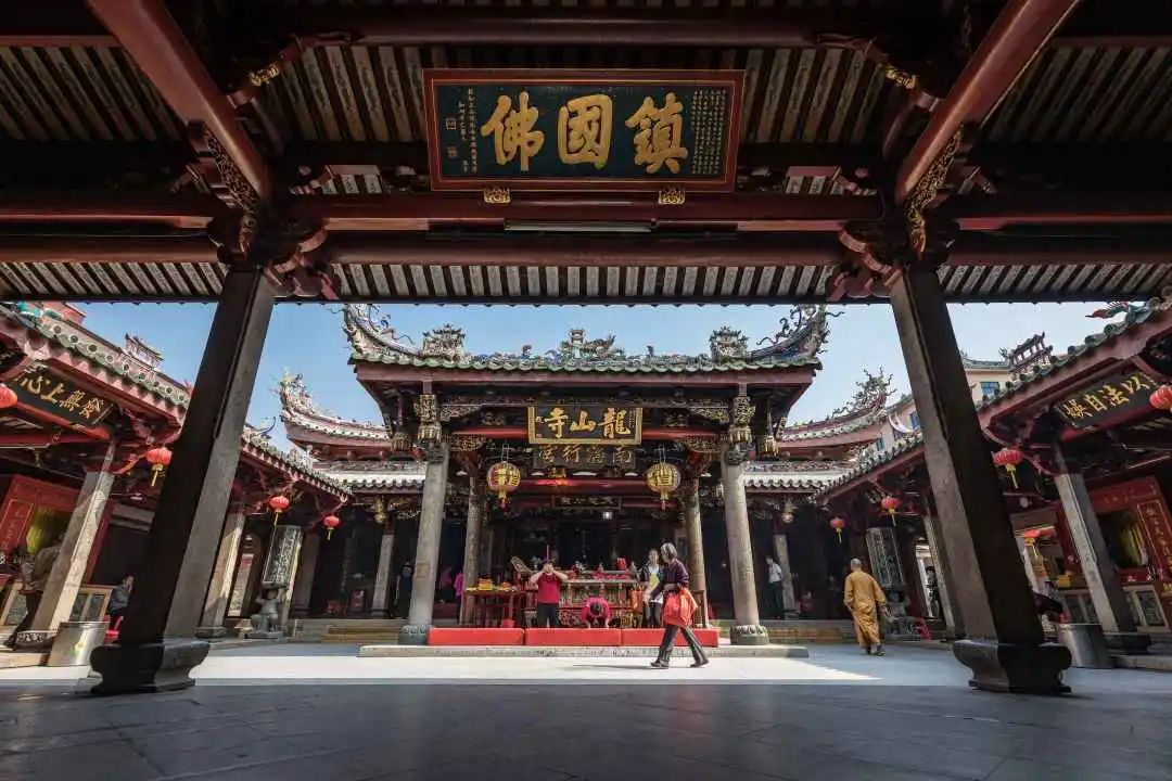龙山寺为全国汉传重点佛教寺院,始建于隋朝,寺内有“千手千眼观音、岩盘龙柱、钟鼓楼”三绝,更有名人张瑞图、弘一法师等人的珍贵墨宝,是全国重点文物保护单位。随着安平商贾的足迹,分灵至台湾及东南亚地区。