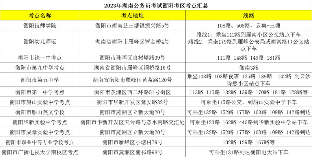 省考衡阳考区