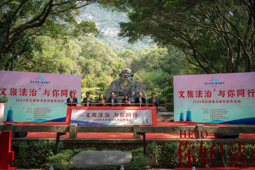为深入学习贯彻党的二十大精神、习近平法治思想和习近平文化思想,加强广大群众的法治教育,丰富法律知识,提升文明旅游素质。3月8日,由泉州市文化广电和旅游局主办,泉州市文化市场综合执法支队承办,泉州旅游协会执行的“文旅法治 与你同行”——2024年文旅普法系列宣传活动在泉州清源山老君岩广场举办。在泉州旅游日益火热的当下,开展文旅法治宣传,必将为泉州文旅大大上分。